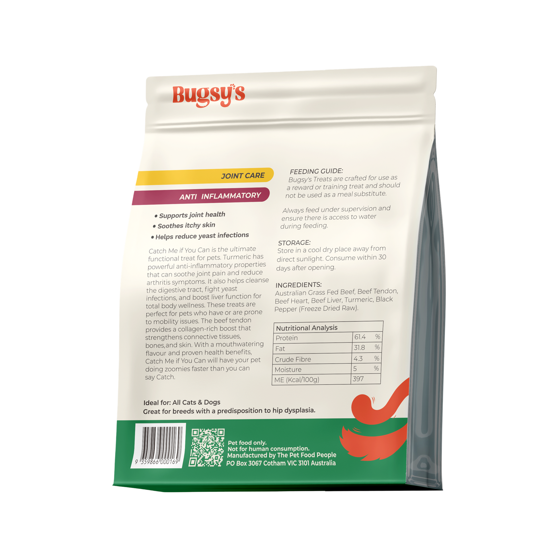 These treats are perfect for pets who have or are prone to mobility issues. The beef tendon provides a collagen-rich boost that strengthens connective tissues, bones, and skin. With a mouthwatering flavor and proven health benefits, Catch Me if You Can will have your pet doing zoomies faster than you can say Catch.