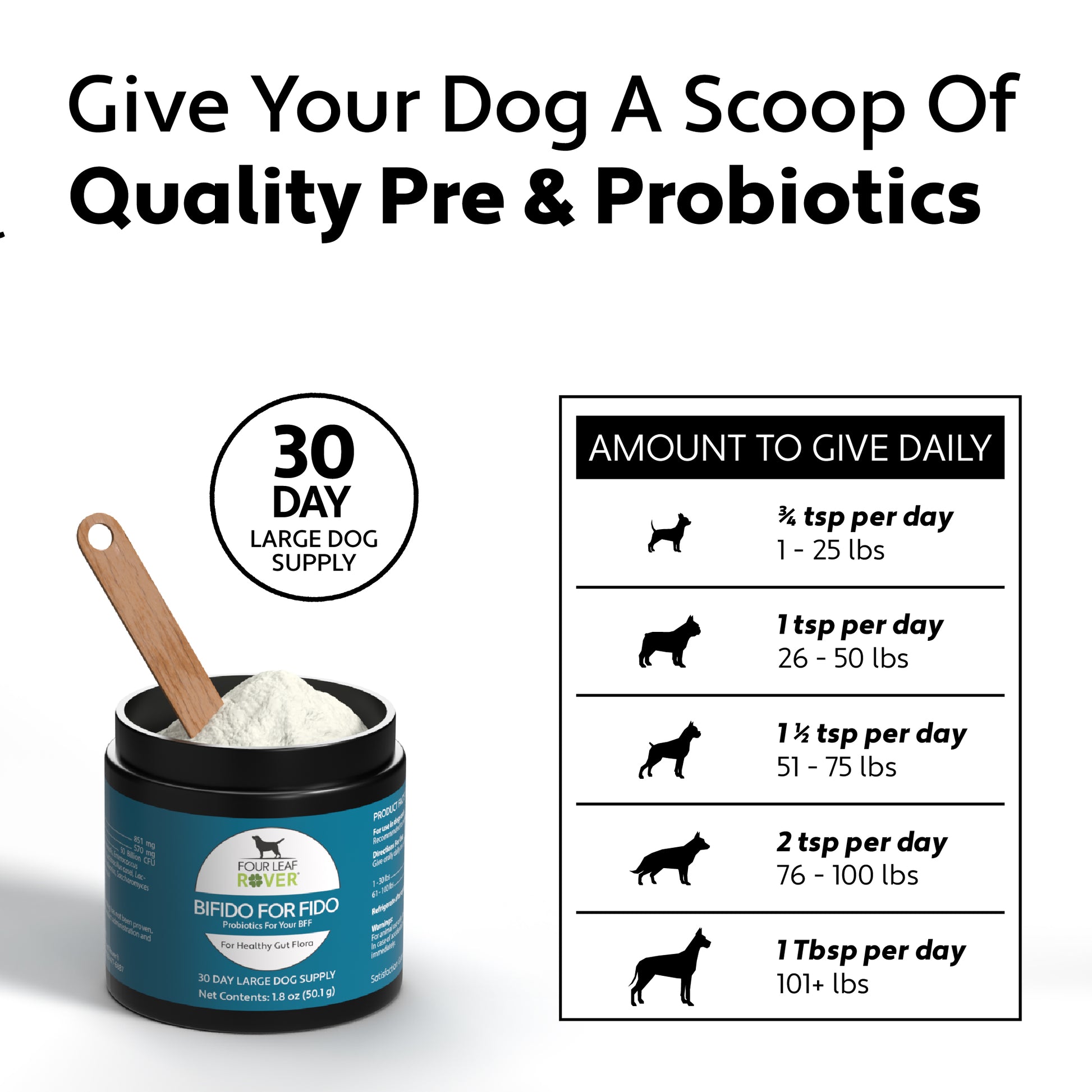 Each probiotic strain in Four Leaf Rover Bifido for Dogs probiotics is carefully chosen for its ability to survive the stomach acid and reach the gut. Plus, it also has Saccharomyces boulardii, a special yeast that can battle Candida (yeast).