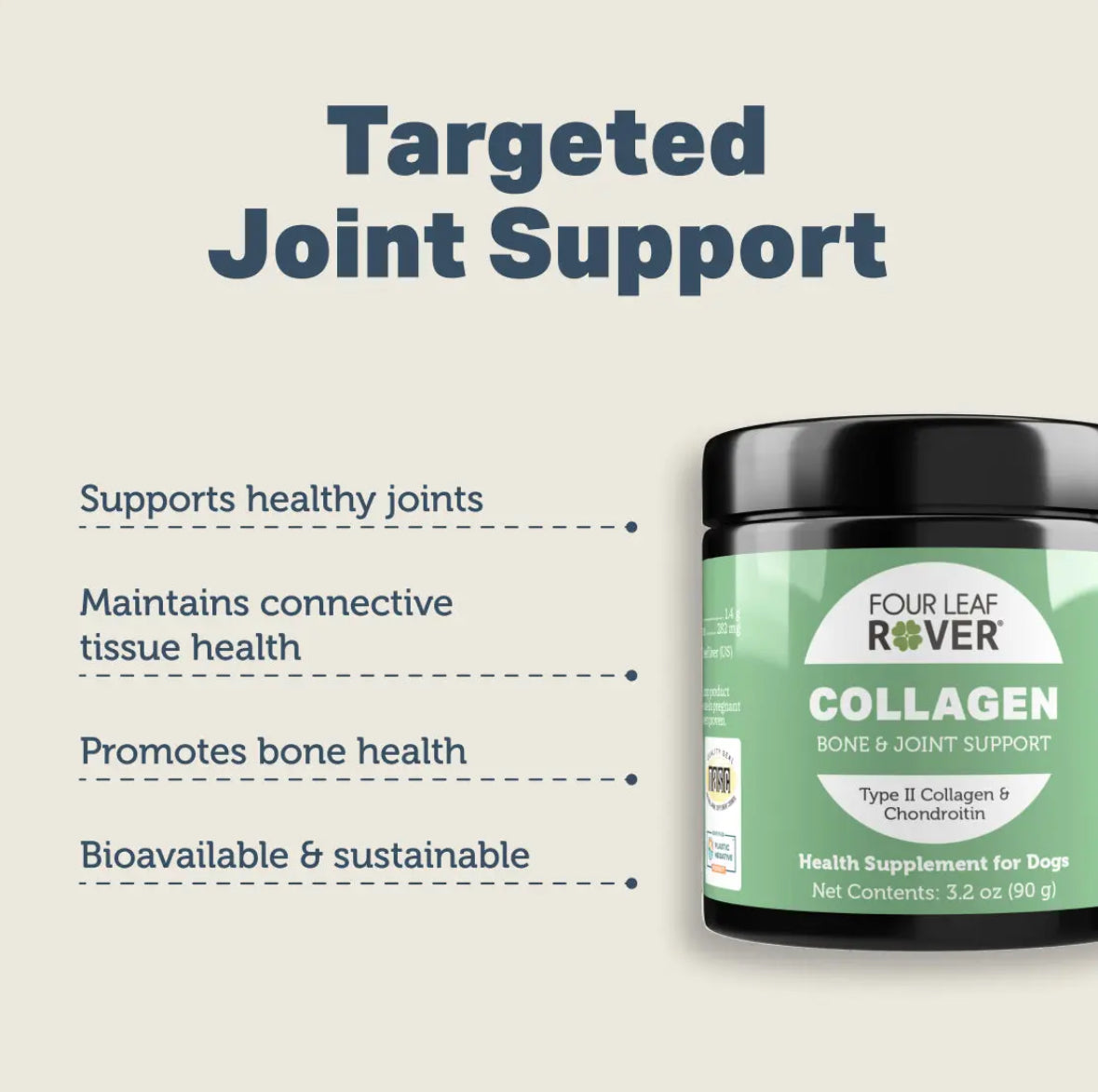 For best results, you can give Collagen with our Hip & Joint product for a full array of naturally occurring glucosamine, chondroitin, collagen and growth factors.