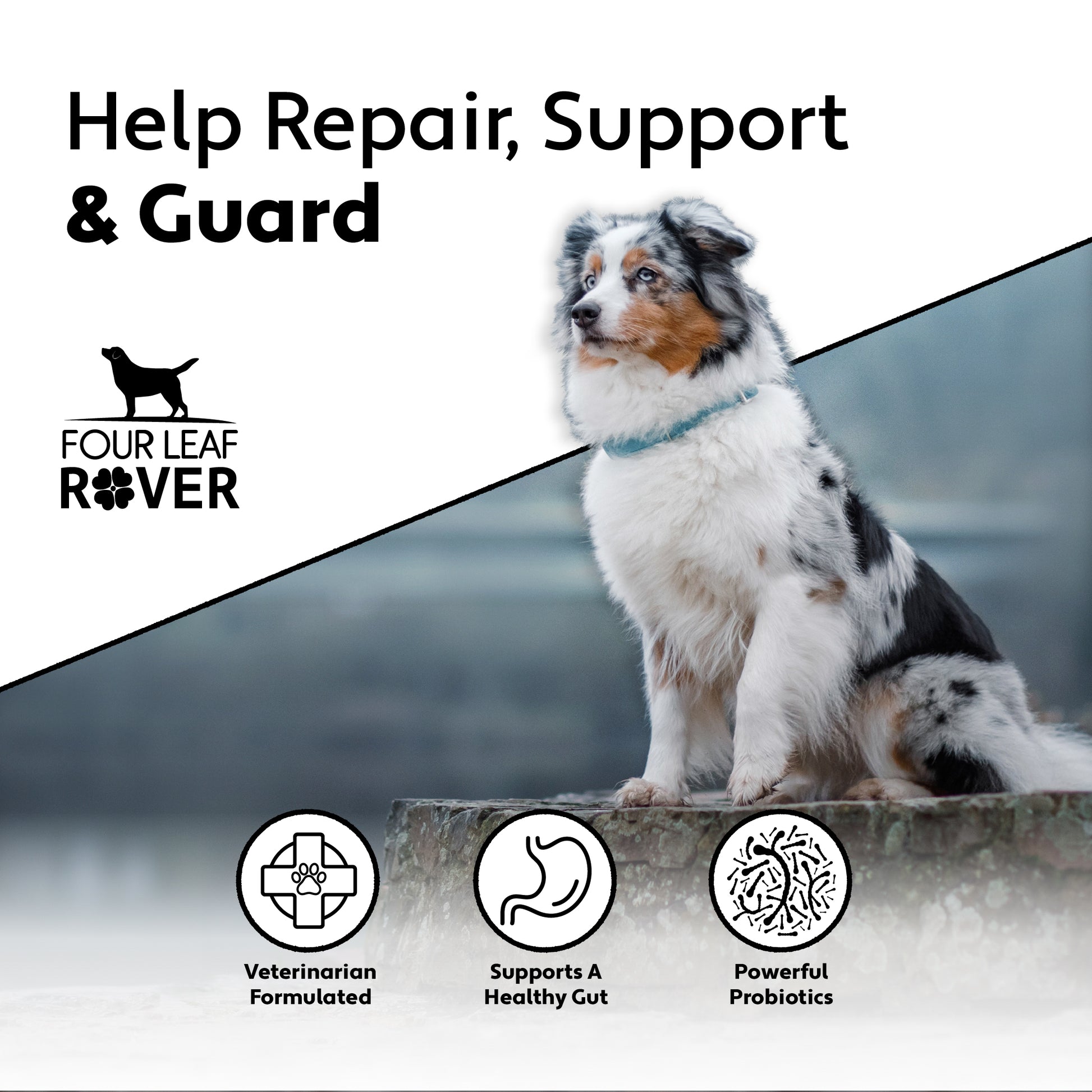 Four Leaf Rover Gut Guard repairs the gut with powerful probiotics.