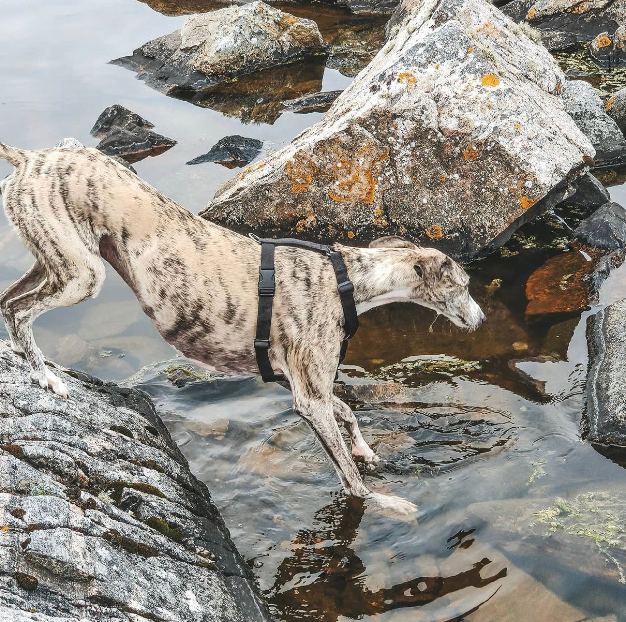 The accurate study and development of the sizing and the five-point adjusting system ensure an excellent fit and adaptability of the harness to the specific dimensions and proportions of the dog.