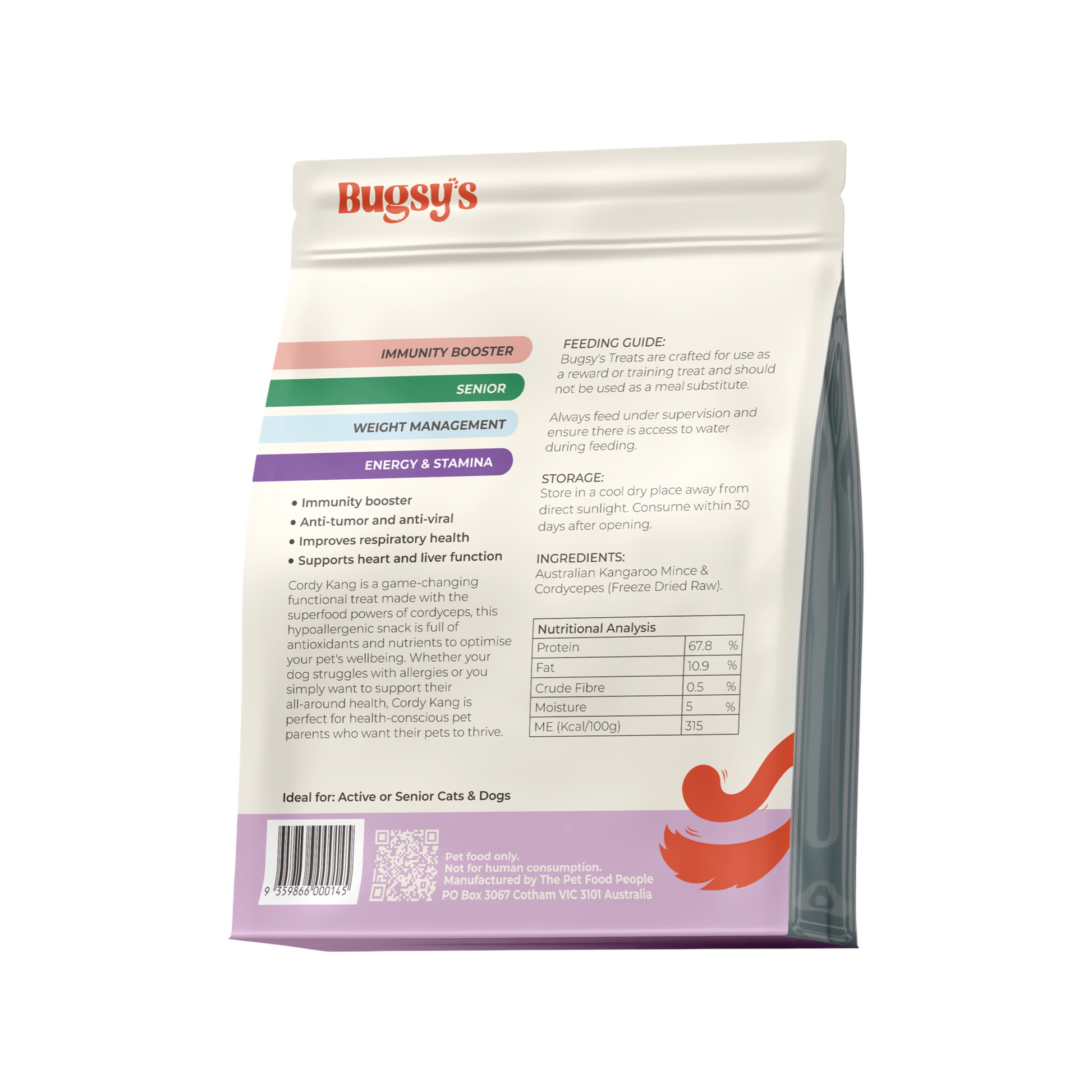 Ingredients: Australian Kangaroo Mince & Cordyceps (Freeze Dried Raw)