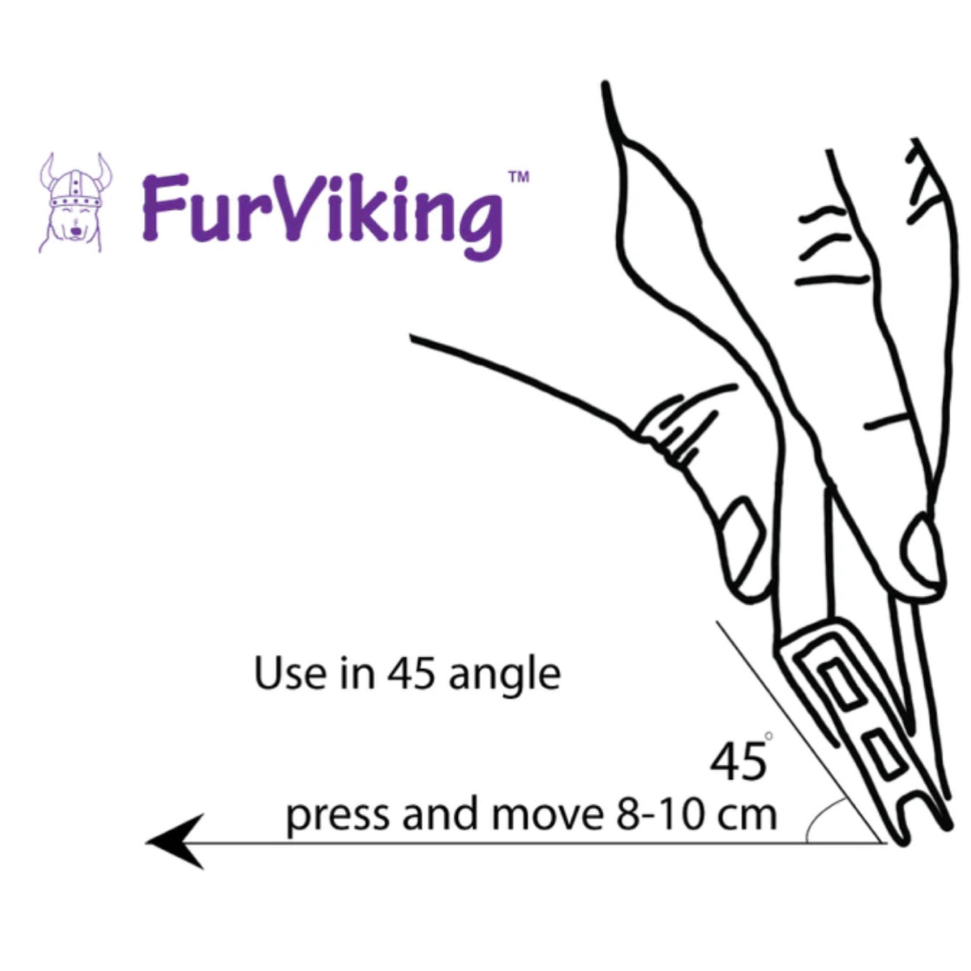 Hold the Furviking at a 45 degree angle and use short strokes in the same direction and watch the hair form a bundle. If you have an exceptional eye for detail to remove stubborn individual remaining hairs use the corner of the blade or water from a spray bottle to create friction and repeat the action specified above.